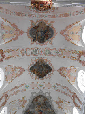 Behind the main altar stands a triptych by the anonymous Master of the Legend of St George (1465-80), with the Transfiguration, Crucifixion and Resurrection. To either side of it are two 19th-century portable reliquary shrines. The one on the right contains the relics of St Cunibert, and the other, those of two British priests, both named Ewald, who were martyred at a place now called Aplerbeck, roughly 50 miles to the northeast of Cologne, while serving as missionaries to the Saxons in Westphalia. Their bodies were brought to the original church of St Clement shortly after their death in 692 AD. Their feast was kept on October 3rd in several parts of Europe, and is still to this day on the Premonstratensian calendar, since St Norbert obtained some of their relics from the church in 1121, and brought them either to Prémontré itself, or Floreffe, the second house of his order to be founded.